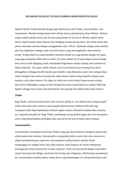 Course ini akan membahas sejarah pemikiran filsafat barat dalam bingkai dialektika dengan. Dimana perkembangan ilmu tidak mengalami kemajuan yang pesat hingga abad pertengahan. Dia mengatakan, bahwa asal mula dari segala sesuatu adalah air. Filsafat abad pertengahan pada dasarnya berisikan penyatuan filsafat dan teologi karena . Sejarah perkembangan filsafat pada abad pertengahan.